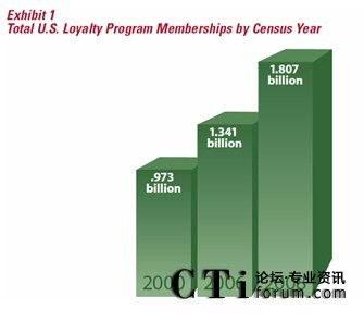 據(jù)權威的客戶忠誠度研究機構COLLOQUY在2009出版的一份報告,2008年底,全美客戶忠誠度計劃的參與人次達到18.07億,平均每個美國家庭參與了14.1個忠誠度計劃,相較2006年底的13.41億參與人次,共增了了24.73%(連續(xù)兩年環(huán)比增長12%/年),而同期美國的GDP增長僅為2.2%。從這一點上看,美國企業(yè)對忠誠度營銷的熱情不減,盡管忠誠度營銷在美國已相當成熟,但美國企業(yè)仍然把它當作是營銷的重要工具。