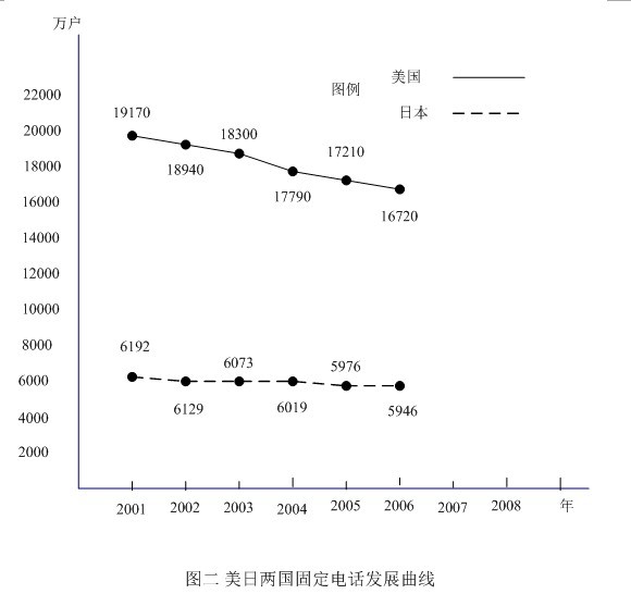 〔3〕大約有2%的美國家庭沒有電話。IBB咨詢公司資深分析師表示,「美國擁有大量愛講電話的人,可以隨處打電話正是美國人熱衷的事情! 大型傳統(tǒng)電話公司如AT&T、威瑞森(Verizon),受到美國人的這一偏好的影響,移動(dòng)通信業(yè)務(wù)現(xiàn)都已經(jīng)超過了他們?cè)镜暮诵臉I(yè)務(wù)(固定電話)。據(jù)桑福.伯恩斯坦公司的調(diào)查顯示,紐約地區(qū)固定電話的數(shù)量,從2000年以來已經(jīng)下降了55%,新澤西的情況也差不多,下降了50%。德州下降了20%,加州下降了21%。在年輕用戶中這個(gè)趨勢更為明顯:34.5%的25到29歲年齡段者,家中只有移動(dòng)電話,30到44歲年齡段者,這個(gè)比例下降至15.5%,65歲以上者,只有2.2%。雖然移動(dòng)電話對(duì)固定電話的取代作用,日美兩國基本相似,但在日本通信公司卻是IP電話和VoIP電話的主要提供者,因此日本固定電話歷年下降曲線就比較平坦,不像美國那樣厲害,請(qǐng)見圖二。