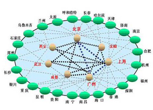 網(wǎng)絡扁平化概念就適時提出來了。現(xiàn)在,網(wǎng)絡扁平化已經(jīng)是運營商網(wǎng)絡建設的主要指導思想了。特別是中國聯(lián)通,由于歷史原因造成的骨干網(wǎng)節(jié)點并不夠多導致其南北方網(wǎng)絡品質(zhì)存在一定差異。而扁平化后能很好的解決此問題。下圖為網(wǎng)絡扁平化示意圖。