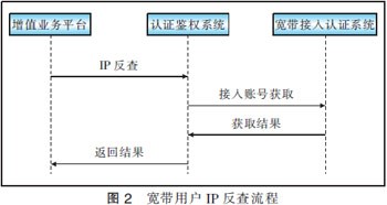 對(duì)于寬帶用戶來說,認(rèn)證鑒權(quán)系統(tǒng)需要根據(jù)用戶訪問的IP地址對(duì)用戶身份進(jìn)行反查;或?qū)τ脩粼L問業(yè)務(wù)時(shí)輸入的用戶賬號(hào)信息進(jìn)行驗(yàn)證。其中反查與驗(yàn)證工作均需借助于寬帶接入認(rèn)證系統(tǒng)(AAA)實(shí)現(xiàn)。