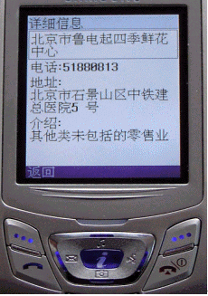 用戶只要在手機的"空中搜"中輸入相關企業(yè)名稱的一部分信息,例如:新鄉(xiāng) 第二百貨公司,或者輸入產品服務的名稱,例如:快遞,餐飲,就會搜索到符合其要求的一組企業(yè)信息,少則數條,多達數十條,點擊任意一個,都會出現(xiàn)詳細的相關信息,信息中包括企業(yè)的電話、地址、企業(yè)介紹等。這樣的一次搜索需要的費用是由搜索產生的數據流量費,費用是一分錢,時間是幾秒,信息服務的提供完全免費。