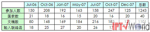 FG IPTV第七次會議共有來自全球近160名專家參加了會議,共收到文稿119篇。中國有20名專家參加了會議,提交文稿37篇,文稿主要集中在體系架構(gòu)、需求、安全、服務(wù)質(zhì)量、中間件等方面。此次會議的所有輸出文檔將輸入到相應(yīng)的研究組(SG)當中。此次會議由于要對所有的輸出文檔進行最后的整理、完善,因此日程非常緊張,每個工作組都幾乎每天工作到深夜,以便能夠保證所有輸出的工作文檔的質(zhì)量。