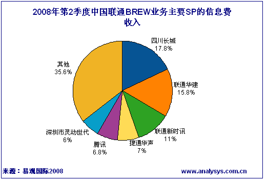 易觀(guān)國(guó)際近期發(fā)布《2008年第2季度中國(guó)手機(jī)游戲市場(chǎng)季度監(jiān)測(cè)》顯示:中國(guó)移動(dòng)JAVA業(yè)務(wù)SP信息費(fèi)方面,掌中米格、北京新浪分居前兩名,兩者市場(chǎng)占有率已提高至31.9%。其中掌中米格信息費(fèi)季度收入達(dá)到2505.86萬(wàn)元,市場(chǎng)占比為17.3%,而新浪信息費(fèi)收入市場(chǎng)占比為14.6%。信息費(fèi)收入的第3至第5名依次為T(mén)OM、com2us、掌尚星空,三者總市場(chǎng)占比為9.7%。