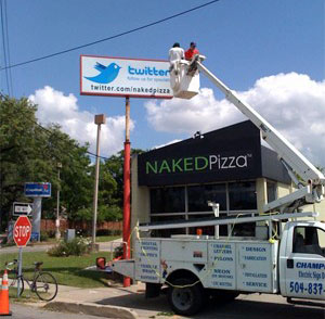繼華爾街日報(bào)、紐約時(shí)報(bào)、英國衛(wèi)報(bào)等報(bào)紙利用起Twitter后,最近,據(jù)Techcrunch網(wǎng)站消息稱,美國新奧爾良名為NakedPizza的比薩店,不僅在Twitter上注冊了帳號,而且拆除了之前標(biāo)有訂餐電話的店前廣告牌,取而代之的是一塊以Twitter為主題的新廣告牌。