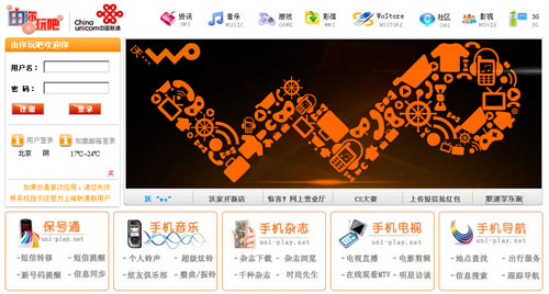該網(wǎng)站分為資訊、音樂、游戲、彩信、WoStore、社區(qū)、影視、3G等幾類。其中,進入WoStore類別還有通信類、信息類、娛樂類、商務(wù)類、音樂類的細分,主要提供聯(lián)通目前已有的相關(guān)增值業(yè)務(wù)。