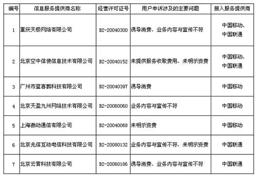 2009年三季度用戶申訴主要涉及增值電信企業(yè)名單