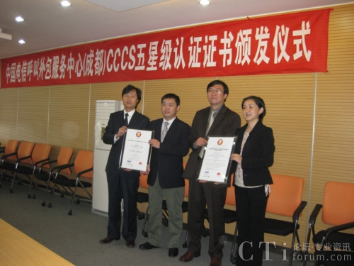 CTI論壇(ctiforum)11月5日消息: 日前,中國(guó)電信呼叫外包服務(wù)中心(成都)獲頒CCCS五星級(jí)客戶(hù)聯(lián)絡(luò)中心證書(shū),成為國(guó)內(nèi)通過(guò)CCCS五星級(jí)認(rèn)證的首家外包呼叫中心。