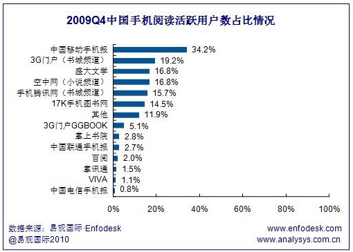 2009年Q4中國(guó)手機(jī)閱讀市場(chǎng)用戶活躍度進(jìn)一步提升