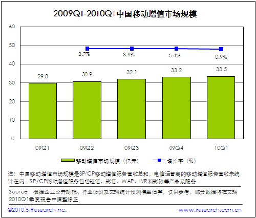 電信運營商計費政策重大調(diào)整對整個移動增值市場產(chǎn)生巨大影響力,2010Q1移動增值市場規(guī)模為33.5億,與09Q1基本持平。電信運營商實施計費通道的強(qiáng)力治理措施,對產(chǎn)品線以WAP計費為主的企業(yè)造成嚴(yán)重生存壓力,與此同時采用短信計費的移動增值產(chǎn)品營銷也受到不同程度影響。實現(xiàn)由單一移動增值業(yè)務(wù)向移動互聯(lián)網(wǎng)服務(wù)進(jìn)行戰(zhàn)略轉(zhuǎn)型,是SP企業(yè)戰(zhàn)略發(fā)展的實踐路徑。艾瑞認(rèn)為電信運營商實施全新的合作伙伴計費政策,將重新構(gòu)建移動增值市場秩序。