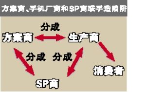 中國移動(dòng)2007年1月出臺的《移動(dòng)夢網(wǎng)SP合作管理辦法》規(guī)定,禁止SP和終端廠家直接進(jìn)行終端內(nèi)置業(yè)務(wù)的合作。但是,大部分國產(chǎn)手機(jī)生產(chǎn)環(huán)節(jié)當(dāng)中,都有一個(gè)重要的角色,那就是手機(jī)方案商。方案商主要負(fù)責(zé)提供整套手機(jī)設(shè)計(jì)方案,包括研發(fā)手機(jī)主板、設(shè)計(jì)操作系統(tǒng),他們把帶有操作系統(tǒng)的主板賣給手機(jī)生產(chǎn)商,生產(chǎn)商再采購?fù)鈿ぁ⒁壕恋炔考M裝成成品手機(jī)。
