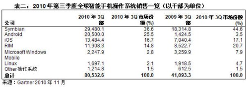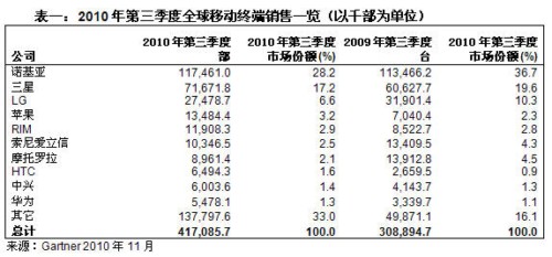 Gartner:2010年第三季度智能手機(jī)銷售增長(zhǎng)96%