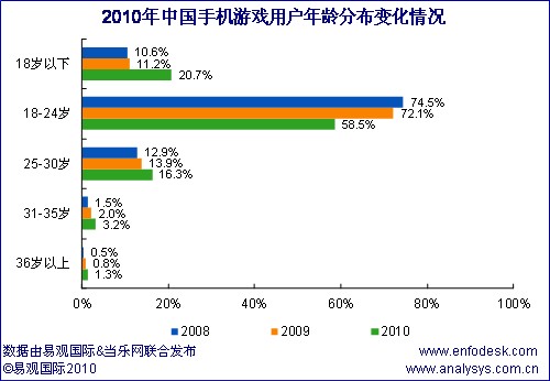 近期易觀國際、當(dāng)樂網(wǎng)聯(lián)合對手機游戲用戶進(jìn)行調(diào)研,推出《中國手機游戲用戶研究報告2010》,從中國手機游戲用戶結(jié)構(gòu)特征和用戶行為方面分析手機游戲產(chǎn)業(yè)發(fā)展三大空間: