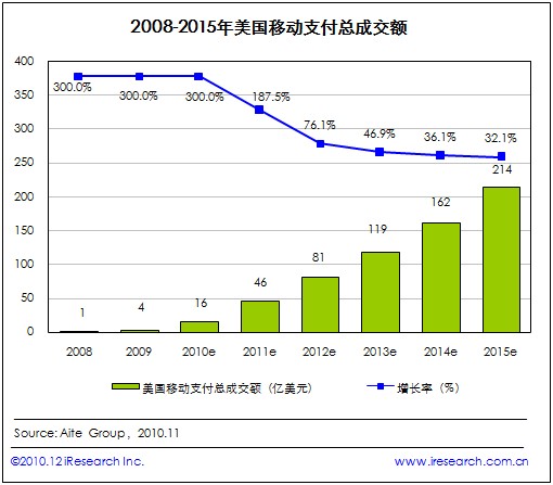 2015年美國移動支付總成交額將達214億美元