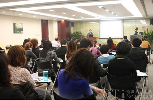CTI論壇總經(jīng)理秦克璇在本次講座開始前表示:本次講座主要是答謝新老客戶11年來對(duì)CTI論壇的支持,同時(shí)也標(biāo)志著CTI論壇新服務(wù)的開始,期待著大家積極參與。同時(shí)秦克璇也特別強(qiáng)調(diào),在殘酷的社會(huì)競(jìng)爭(zhēng)中,生理與心理健康對(duì)于適應(yīng)工作,應(yīng)對(duì)挑戰(zhàn)是非常重要的。CTI論壇愿意付出努力,與客戶共同學(xué)習(xí)和交流有關(guān)于心理,生理,工作,理財(cái)?shù)确矫娴脑掝}。