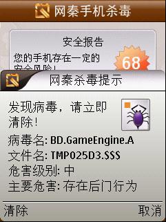 此外,在分析過程中專家還發(fā)現(xiàn),這款手機病毒聯(lián)網(wǎng)下載的“gameEngine.sis_7”惡意插件存在 “自我保護”機制,一旦被下載到手機中將影響其它第三方手機安全軟件的正常安裝。