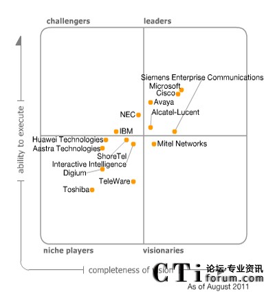 Gartner發(fā)布《2011統(tǒng)一通信魔力象限》報(bào)告