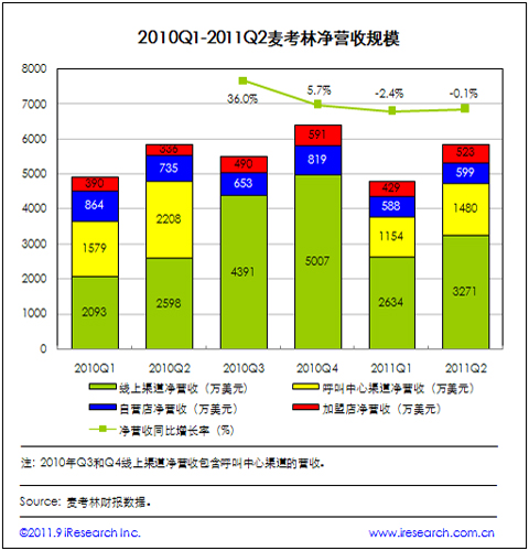 麥考林業(yè)務(wù)調(diào)整 2011Q2線上渠道凈營收同比增長25.9%