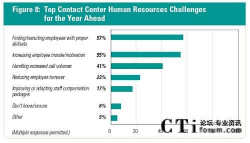 73%的公司表示,呼叫中心是公司面向客戶的窗口。 57%的呼叫中心管理者正在經歷答疑或保持員工在中心擁有合適的技能。此外,41%的人表示,處理增加的呼叫量是呼叫中心未來一年面臨的主要挑戰(zhàn)。