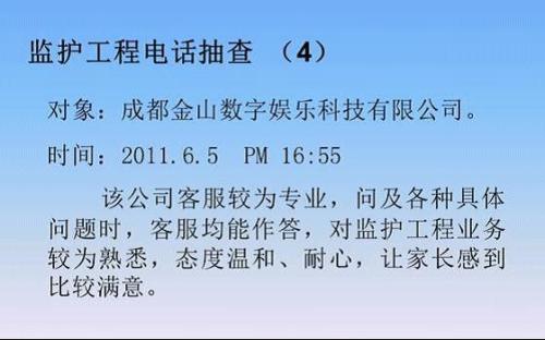 金山游戲客服經過6年多的發(fā)展,客服的服務水準和管理日趨完善。楊靜一表示,金山客服的服務理念是“金色心服務”,“金色”代表陽光、溫暖,“心”代表真誠、用心,金色“心”服務就是真誠用心地為玩家服務,讓玩家在服務中感受到陽光與溫暖。