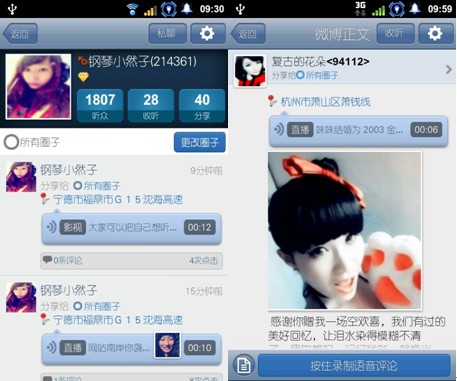今年9月6日,夢(mèng)想兄弟正式發(fā)布基于移動(dòng)互聯(lián)網(wǎng)的社交工具語音微博,這款軟件結(jié)合了微博收聽人物、話題及智能手機(jī)特有的地理位置服務(wù)等元素,用戶可以實(shí)現(xiàn)直接錄音發(fā)布語音信息的功能,并且不收取任何費(fèi)用,僅消耗流量。