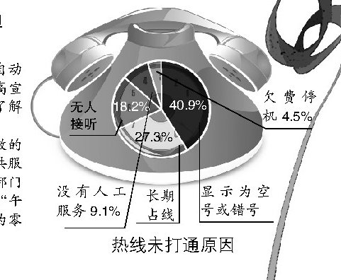 其中超過四成的熱線顯示為空號或錯號,這是打不通最主要的原因。