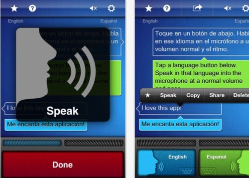 SayHi Translate支持33種語(yǔ)言和方言的翻譯,包括英語(yǔ),中文,西班牙語(yǔ)和德語(yǔ)等,并能夠完成所有這些語(yǔ)言的交互翻譯。應(yīng)用的使用方法也非常簡(jiǎn)單,你只需選擇你要翻譯成的語(yǔ)言種類,輕點(diǎn)按鈕,然后對(duì)著手機(jī)說話,應(yīng)用會(huì)捕捉你的語(yǔ)音信息,將其翻譯成指定語(yǔ)言的文本信息并用目標(biāo)語(yǔ)言說出來(lái)。