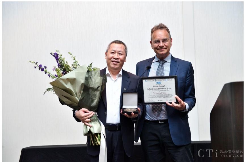 David Sarnoff產(chǎn)業(yè)成就獎(jiǎng)設(shè)立于2018年,每年僅授予全球顯示產(chǎn)業(yè)的一位杰出領(lǐng)袖,以表彰其卓越領(lǐng)導(dǎo)力和長(zhǎng)遠(yuǎn)影響。陳炎順董事長(zhǎng)在發(fā)表獲獎(jiǎng)致辭時(shí)表示,感謝SID榮譽(yù)與獎(jiǎng)項(xiàng)委員會(huì)授予的此項(xiàng)榮譽(yù),并特別感謝業(yè)界伙伴的支持以及全體京東方人為此刻榮譽(yù)的不懈努力!榮譽(yù)屬于全體京東方人!五年來(lái),京東方始終保持著創(chuàng)新不斷的步伐,特別是我們深刻的洞察半導(dǎo)體顯示和相關(guān)技術(shù),比如物聯(lián)網(wǎng)技術(shù)、數(shù)字技術(shù)、人工智能技術(shù),尤其針對(duì)目前快速發(fā)展的IOT技術(shù)的融合趨勢(shì),創(chuàng)新性提出“屏之物聯(lián)”的發(fā)展戰(zhàn)略,為半導(dǎo)體顯示產(chǎn)業(yè)發(fā)展打開廣闊的空間和無(wú)限的可能,也為科技企業(yè)的戰(zhàn)略升維提供了思維邏輯和方法論!