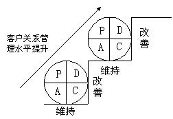 容,而PDCA環(huán)在客戶關(guān)系管理中不斷循環(huán)的結(jié)果就是企業(yè)客戶關(guān)系管理水平的不斷推進(jìn),這個(gè)過(guò)程可以用上圖表示。 |