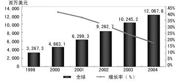 IDC預(yù)測,2004年CRM市場規(guī)模將達(dá)到121億美元,復(fù)合平均增長率為29.9%。而同期全球IT市場的復(fù)合平均年增長率為12%。