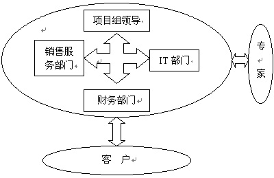 CRM項目小組由公司內(nèi)部各部門及外部人員共同組成。一般來講,項目小組應(yīng)該包括高層領(lǐng)導(dǎo)(一般為副總)、銷售和營銷部門的人員、IT部門的人員、財務(wù)人員,還要包括所有最終用戶的代言人。他們作為CRM系統(tǒng)實施的輸入部分。