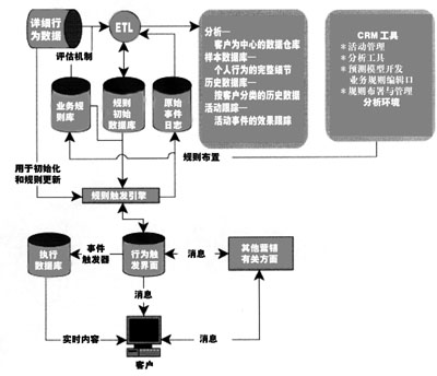 關(guān)系數(shù)據(jù)庫系統(tǒng)有三種主要數(shù)據(jù):典型客戶案例的詳細(xì)數(shù)據(jù)、對所有客戶的總結(jié)性歷史數(shù)據(jù)以及具體活動的數(shù)據(jù)。分析數(shù)據(jù)庫提供輸入數(shù)據(jù),從而得到對客戶的認(rèn)識,而滿足ETL處理的業(yè)務(wù)規(guī)則庫為分析數(shù)據(jù)庫提供派生屬性。這個過程將保持離線分析和實時事件觸發(fā)規(guī)則之間的同步,在動態(tài)建立表格的過程中處理初始化完成后的派生屬性相加,并對相應(yīng)的元數(shù)據(jù)進(jìn)行更新,這些處理都是自動實現(xiàn)的。