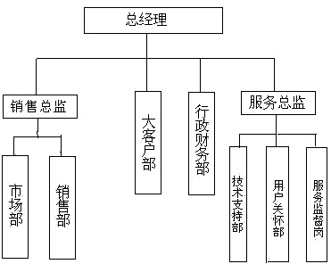 經(jīng)過討論,結(jié)合公司的實(shí)際情況,Z公司迅速采納了項(xiàng)目組提出的建議,并在CRM項(xiàng)目啟動(dòng)大會上宣布項(xiàng)目開始實(shí)施。而且調(diào)整了組織結(jié)構(gòu),新的結(jié)構(gòu)如圖2所示。整個(gè)CRM項(xiàng)目分兩個(gè)階段實(shí)施,第一階段實(shí)現(xiàn)銷售業(yè)務(wù)的跟蹤監(jiān)控,以及部分市場信息的共享傳遞,第二階段再將公司的市場管理、服務(wù)管理、用戶關(guān)懷等業(yè)務(wù)流程納入整個(gè)系統(tǒng)。