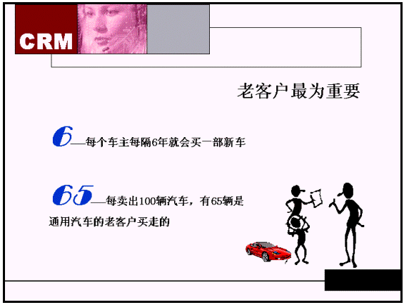 中秋節(jié)之前,貴州一家房地產(chǎn)企業(yè)策劃部的經(jīng)理告訴我說,他們?yōu)榱嘶貓罂蛻,?zhǔn)備投入幾十萬元邀請北京某家歌舞團(tuán)到他們的小區(qū)去演出。我問道,你了解你的客戶嗎?他們是不是需要這種"載歌載舞"的服務(wù)方式,如果一方面你提供給客戶的房子在漏水,而又沒有人按照相應(yīng)的流程去進(jìn)行處理,另一方面你卻在耗費(fèi)資財"載歌載舞"?蛻舨⒉灰欢ㄙI你的帳,你有錢搞歌舞晚會,為什么不花錢把服務(wù)搞好,對方聽了之后久久不語。通過CRM能夠有效地摸清客戶中存在的問題,從而也能夠非常有針對性地實現(xiàn)一對一的客戶服務(wù)。在以往缺乏相應(yīng)的手段來摸清客戶的問題,以便給客戶提供相應(yīng)的解決辦法,所以效果不夠理想。而現(xiàn)在,通過CRM能夠細(xì)分客戶的類型,正確地評估客戶的價值,從而根據(jù)客戶價值來采取相應(yīng)的服務(wù)手段,在相同投入的情況下,解決客戶問題的效果要比以往有極大的提高。
