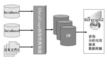 由于客戶數(shù)據(jù)量很大,為了在不同的數(shù)據(jù)庫中將大量的數(shù)據(jù)進行整合,數(shù)據(jù)處理效率十分重要。在實現(xiàn)中不直接操作數(shù)據(jù)庫而使用文本文件的優(yōu)勢在于DataStage直接抽取文本文件數(shù)據(jù)的效率高于從數(shù)據(jù)庫中抽取,DataStage訪問數(shù)據(jù)庫時需要通過ODBC連接相應(yīng)的數(shù)據(jù)庫Driver,連接上數(shù)據(jù)庫后,從數(shù)據(jù)庫中抽取部分?jǐn)?shù)據(jù)存放于DataStage