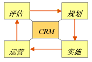如圖所示,CRM的實(shí)施步驟是診斷-規(guī)劃-實(shí)施-評(píng)估的閉環(huán)的過程,保證了"大處著眼、小處入手、迅速見效"。這樣保證了既有長(zhǎng)遠(yuǎn)的規(guī)劃和目標(biāo),又能夠步步為營,鞏固實(shí)施成果。