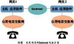 附圖采用網(wǎng)關(guān)的Internet電話示意