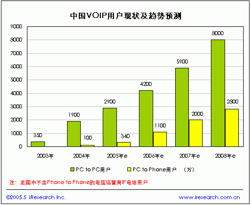 08年中國PC to Phone VOIP用戶將達2800萬