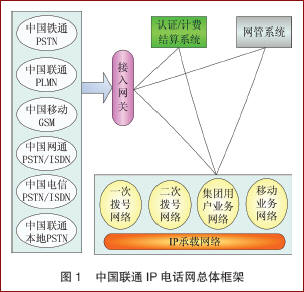 中國(guó)聯(lián)通IP電話網(wǎng)自1999年6月入運(yùn)營(yíng)以來(lái),經(jīng)過(guò)一期、二期和三期工的建設(shè),目前,網(wǎng)絡(luò)已覆蓋中國(guó)329個(gè)地市,E1端口規(guī)模超過(guò)1.8萬(wàn)個(gè),成為全球最的IP電話網(wǎng)絡(luò)。網(wǎng)絡(luò)的話務(wù)量已經(jīng)達(dá)到月近10億分鐘,已是世界上流量最大的電話網(wǎng)絡(luò)。中國(guó)聯(lián)通IP電話網(wǎng)總體框架圖1所示,包括IP承載網(wǎng)絡(luò)、業(yè)務(wù)網(wǎng)絡(luò)(包式括一次撥號(hào)業(yè)務(wù)網(wǎng)、二次撥號(hào)業(yè)務(wù)網(wǎng)、集團(tuán)用戶(hù)業(yè)務(wù)網(wǎng)和移動(dòng)用戶(hù)業(yè)務(wù)網(wǎng))、IP電話網(wǎng)絡(luò)管理設(shè)備(如計(jì)費(fèi)結(jié)算系統(tǒng)、網(wǎng)管系統(tǒng)等)、與各類(lèi)本地網(wǎng)絡(luò)連接的接入網(wǎng)關(guān)等部分。