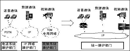 通過IP化改造,原來分別管理IP網(wǎng)絡(luò)和電話網(wǎng)絡(luò)的兩個(gè)部門可以有效整合,有助于簡(jiǎn)化機(jī)構(gòu)設(shè)置和工作流程,實(shí)現(xiàn)對(duì)行業(yè)通信系統(tǒng)的統(tǒng)一管理,提高行業(yè)科技部門的工作效率(見圖1)。