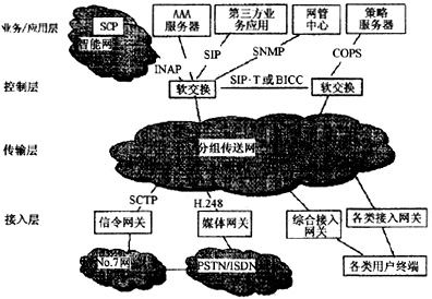 基于軟交換技術的網(wǎng)絡結構是以軟交換設備為核心,能夠實現(xiàn)業(yè)務與控制、接入與承載彼此分離,各功能部件之間采用標準協(xié)議進行互通的體系結構。通過優(yōu)化網(wǎng)絡結構實現(xiàn)網(wǎng)絡的融合和業(yè)務的融合,使得分組交換網(wǎng)絡能夠繼承原有電路交換網(wǎng)中豐富的業(yè)務功能,同時可以在全網(wǎng)范圍內快速提供原有網(wǎng)絡難以提供的新型業(yè)務。