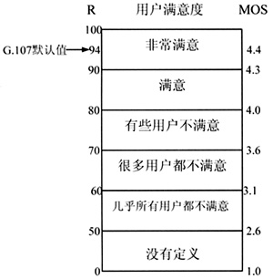在E-Model測(cè)量中包含了影響窄帶電話通話質(zhì)量的多種傳輸參數(shù),在ITU-T G.107中提供了一組默認(rèn)值,當(dāng)終端和應(yīng)用環(huán)境是正常的,可以直接使用這些默認(rèn)值。根據(jù)這些默認(rèn)值和一些可求的參數(shù)比如延時(shí)、丟包率等可以得到E-Model輸出的傳輸參數(shù)R。R直越大,說(shuō)明語(yǔ)音質(zhì)量越好,R值的范圍是0-100,0是最差的,100是最好的。