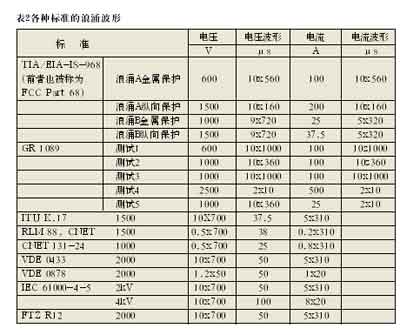 K.20/K.21(國際電信聯(lián)盟)和中國的YD/T993、950標(biāo)準(zhǔn)。不同的標(biāo)準(zhǔn)要求保護(hù)器件、技術(shù)和拓?fù)渚哂胁煌姆(wěn)定性狀態(tài)。通過比較我們發(fā)現(xiàn),符合美國標(biāo)準(zhǔn)的保護(hù)器的抵御能力要比符合國際電信聯(lián)盟標(biāo)準(zhǔn)的高,更比符合中國標(biāo)準(zhǔn)的為高。在大部分情況下,符合美國標(biāo)準(zhǔn)的保護(hù)解決方案基本上都能通過ITU-T