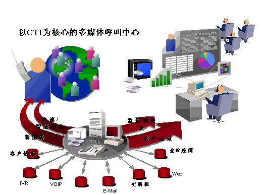 相比之下,以CTI技術(shù)為核心的呼叫中心才有可能打破這些局限,成為真正具有開放性、可靠性、靈活性、統(tǒng)一性的多媒體呼叫中心。優(yōu)利公司提供的以CTI技術(shù)為核心的呼叫中心,具有統(tǒng)一的CTI核心組件、統(tǒng)一的智能轉(zhuǎn)接策略、統(tǒng)一的呼叫統(tǒng)計(jì)和業(yè)務(wù)統(tǒng)計(jì)、統(tǒng)一的業(yè)務(wù)代表座席應(yīng)用、統(tǒng)一的管理配置環(huán)境及完善的互聯(lián)網(wǎng)服務(wù)接口功能模塊,是客戶選擇呼叫中心與互聯(lián)網(wǎng)技術(shù)相結(jié)合的有效方案之一。