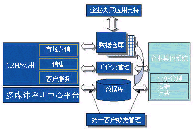 一個完整的客戶關(guān)系管理系統(tǒng)應(yīng)該包括:多媒體呼叫中心系統(tǒng)、客戶關(guān)系管理應(yīng)用、統(tǒng)一客戶數(shù)據(jù)管理系統(tǒng)和數(shù)據(jù)倉庫、工作流管理系統(tǒng)和企業(yè)決策應(yīng)用支持系統(tǒng)。