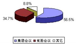 如圖2所示,集團(tuán)會(huì)議終端所占份額為56.5%,桌面會(huì)議終端為34.7%。桌面會(huì)議終端盡管發(fā)展時(shí)間不長,但由于其較好地集成了會(huì)議、數(shù)據(jù)等應(yīng)用,其市場份額也頗為可觀。與集團(tuán)會(huì)議終端相比,近年來增長較為迅速。