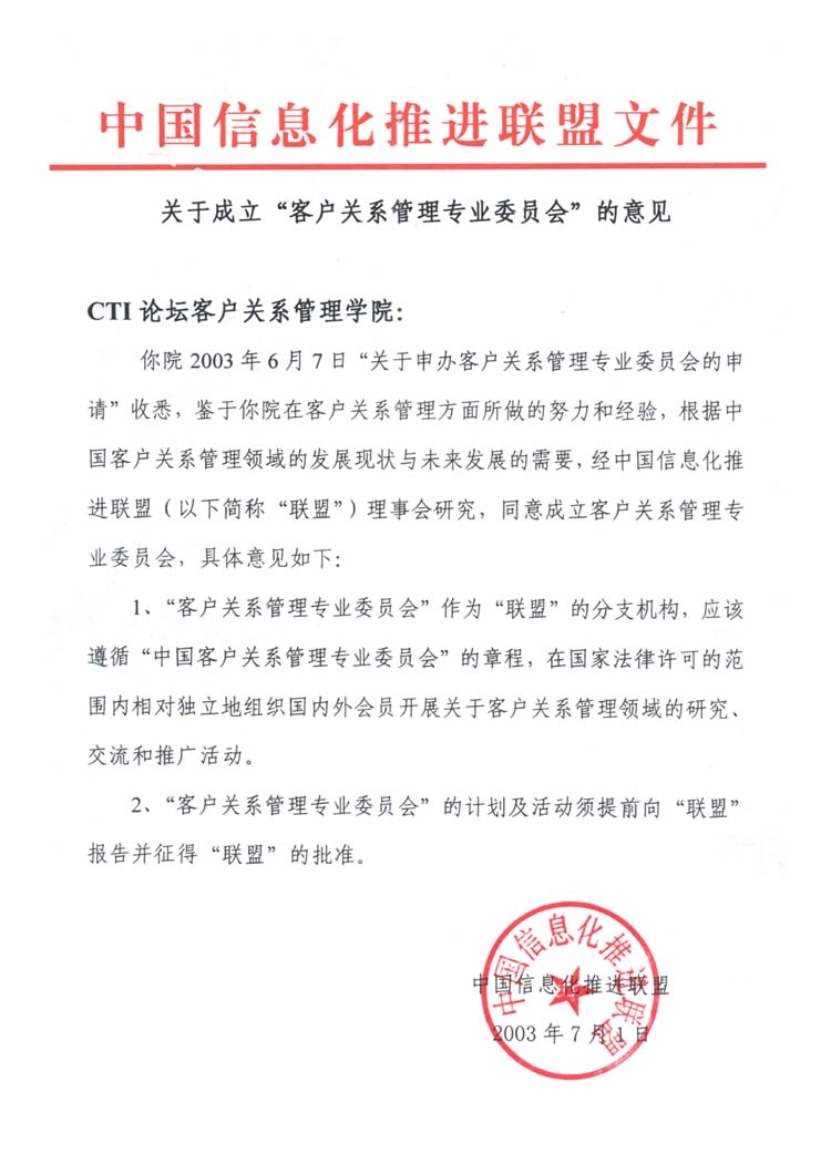 近日,由中國移動、中國網(wǎng)通、中國聯(lián)通、海爾集團、聯(lián)想集團、摩托羅拉、微軟、CTI論壇等20多家單位發(fā)起籌備的"中國客戶關(guān)系管理專業(yè)委員會"(以下簡稱專委會),經(jīng)信息產(chǎn)業(yè)部中國信息化推進聯(lián)盟的批準,正式在京成立。