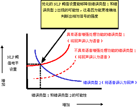 dB)能夠顯著降低將雙對話語音信號誤認為聲學(xué)回聲信號的概率,從而防止了"錯誤類型2"。總之,在"錯誤類型1"(實線曲線,具有語音增強特性)和"錯誤類型2"曲線的交叉點上,通過與之對應(yīng)的NLP設(shè)置,可以獲得最佳的性能(請參見圖10)。