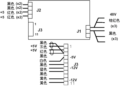 首先要將連接PSU與系統(tǒng)其它部分的電纜拆除。有兩個"鍬型連接點端"和一個"螺絲型連接端"連接器模塊,它們的固定螺絲可以通過PSU蓋的一條縫而觸及。這些連接器上所有電纜都應拆除,電纜位置在圖8-1中詳述。將4個固定螺絲除下,將PSU從機箱中抽出。