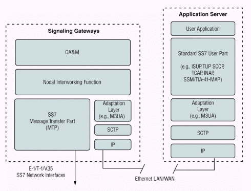 SCTP和應(yīng)用層軟件,如MTP3用戶適配層 (M3UA),以及標(biāo)準(zhǔn)的七號信令用戶端軟件,如ISUP、移動應(yīng)用部分 (MAP)、或者智能網(wǎng)應(yīng)用部分