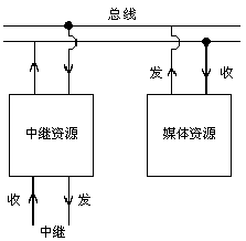 如果使用全雙工連接,兩種資源之間有雙向的路由,如下圖所示。每一種資源偵聽其他資源的傳輸,典型的情況如媒體和中繼設(shè)備之間的相互路由: